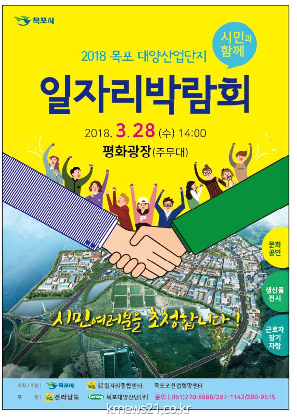 (뉴스21/장병기기자)=목포시가 오는 28일 오후 1시부터 평화광장에서 ‘대양산단 입주기업 일자리박람회’를 개최한다.