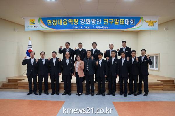 (뉴스21/장병기기자)=전남소방본부는 29일 전남 소방학교에서 신속한 재난현장 출동과 효과적인 현장대응시스템 구축을 위한 ‘현장대응역량 강화 방안 연구 발표대회’를 개최, 고흥소방서가 최우수상을 수상했다고 30일 밝혔다.