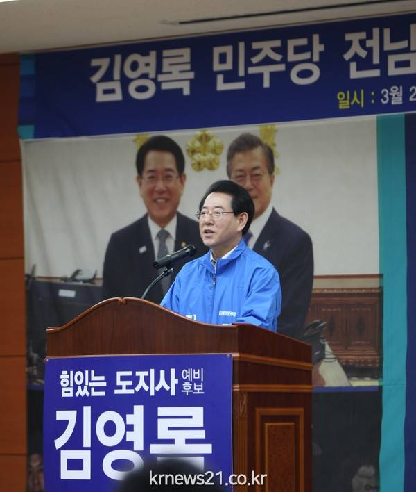 한편 김영록 민주당 전남지사 예비후보는 문재인정부 초대 농식품부 장관, 18·19대 국회의원, 전남도 경제통상국장과 행정부지사 등을 지냈다.