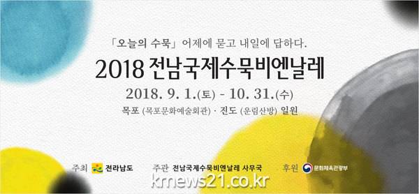 2018 전남국제수묵비엔날레는 국내 최초의 전통 회화 비엔날레이자 남도문예르네상스의 선도사업으로 오는 9월 1일부터 10월 31일까지 목포 문화예술회관 일원과 진도 운림산방 일원에서 개최된다.