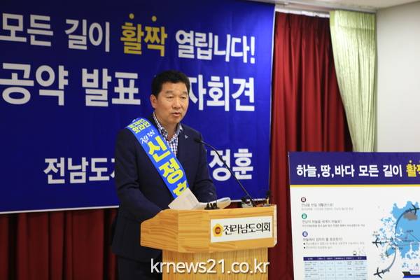 (뉴스21/장병기기자)=더불어민주당 신정훈 전남도지사 예비후보는 무안국제공항을 동북아 허브공항으로 육성하고, 광주·나주 혁신도시권과 순천, 여수, 목포 등 전남의 주요도시를 철도망으로 연결하며, 전남교통공사를 설립해 여객선 준공영제를 실시하는 등 사통팔달의 교통체계를 구축하겠다고 밝혔다.