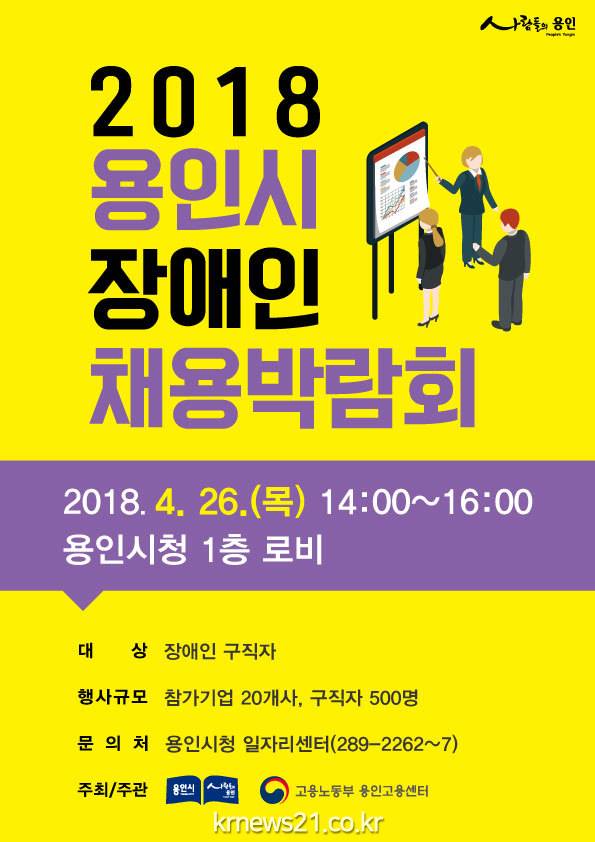 용인시는 장애인들의 취업을 지원하기 위해 오는 26일 시청 로비에서 올해 첫 ‘장애인 채용박람회’를 개최한다고 밝혔다.
