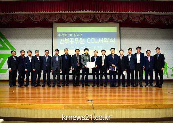 안산시는 지난 27일 시청 대회의실에서 확대간부회의를 통해 이진수 부시장과 4급 이상 간부공무원이 직장문화리더(Culture Change Leader, CCL)로 솔선수범할 것을 다짐하는 서약식을 가졌다.