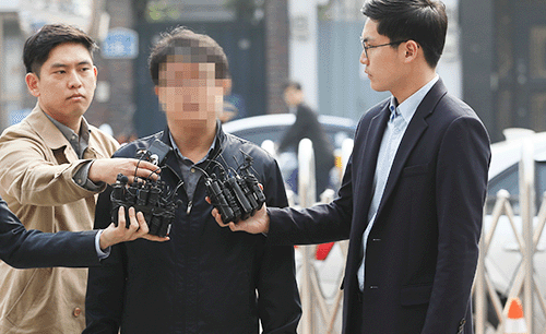 드러난 더불어민주당 김경수 의원 보좌관 한모(49)씨가 30일 오전 피의자 신분으로 경찰에 출석했다.