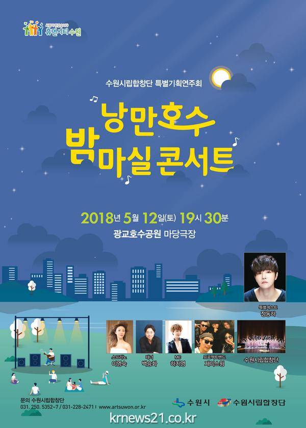 수원시는 12일 저녁 7시 30분 광교호수공원 마당극장에서 수원시립합창단 특별기획 연주회 ‘낭만호수 밤마실 콘서트’를 연다.