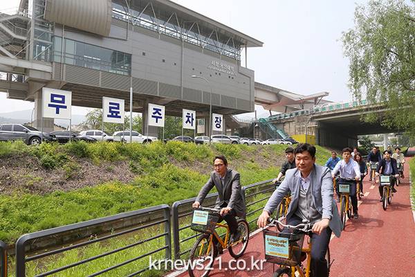 한편 시는 지난해 4월 일요일과 공휴일에 경전철 내 자전거 휴대 탑승을 허용한데 이어 이번에 자전거 무료 대여를 하게 돼 경전철 인근 직장인이나 거주 시민들의 경전철 이용에 도움을 줄 것으로 기대하고 있다.