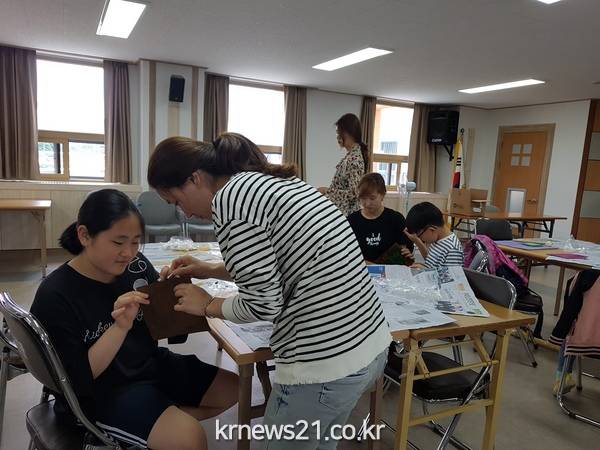 (전북/뉴스21)김문기기자=고창군이 지난 12일부터 26일까지 매주 토요일 청소년수련관에서 관내 초등학생과 학부모 20여명이 참석한 가운데 2018 청소년수련시설 프로그램 ‘엄마와 함께하는 가죽공예’를 운영했다.