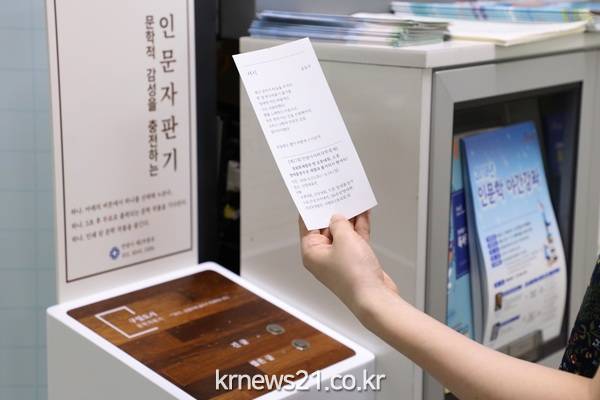 시 관계자는“인문자판기를 통해 바쁜 시간에 쫓겨 책을 가까이 하지 못하는 시민들에게 문학 작품을 읽는 즐거움을 제공하고 나아가 시민들이 일상생활 속에서 문학 작품을 접할 수 있는 환경을 만들어 나가겠다.”고 말했다.