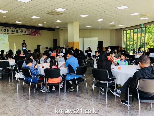 가평군자원봉사센터 가족봉사단 1기, 2기가 지난 26일 자라섬 수상스포츠센터에서 39가족 110여명이 가정의 달을 맞아 워크샵을 개최했다.