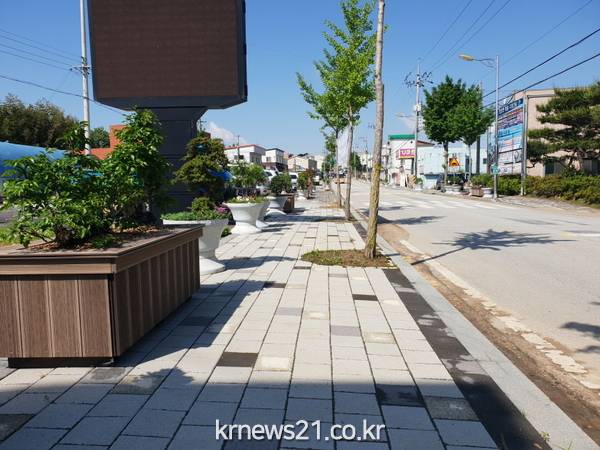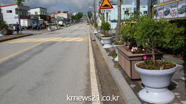(전북/뉴스21)김묵기기자=고창군 대산면이 쾌적하고 아름다운 보행환경과 가로경관을 제공하기 위해 관통로에 꽃박스를 설치했다고 30일 밝혔다.