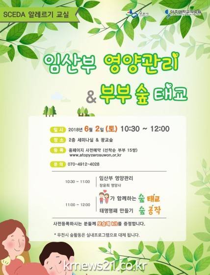 수원시환경성질환아토피센터(이하 아토피센터)는 6월 2일 ‘임산부 영양관리와 부부 숲 태교’를 주제로 올해 3번째 알레르기 교실을 연다. 예비 엄마·아빠가 함께 참여하는 무료 프로그램이다.