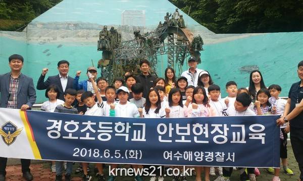 여수해경에 따르면 이날 교육에는 안보 사각지대인 여수시 경호 초등학교 학생 25명을