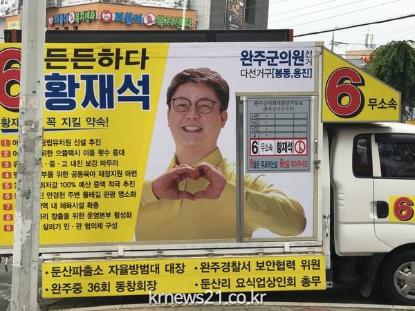▲ 황재석후보(전북/뉴스21)송태규기자= 전북 완주군 다선거구에 출마하는 무소속 황재석후보가 투표일을 앞둔 11일, “주민과 약속한 공약을 반드시 실천하는 황소처럼 우직하고, 든든한 심부름꾼이 되겠다”며 지지를 호소했다.