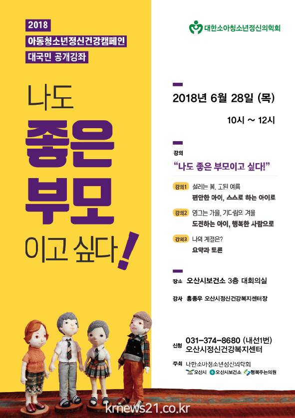 오산시보건소 및 오산시정신건강복지센터는 오는 28일 아동청소년 정신건강 캠페인 공개강좌 ‘나도 좋은 부모이고 싶다!’를 개최한다.