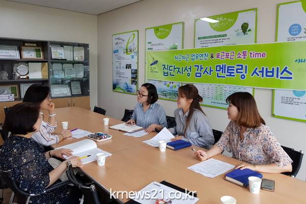 사후 적발 위주의 감사보다는 예방적 차원의 감사를 위해 작년부터 추진해 온 『집단지성 감사 멘토링 서비스』는 동 직원들의 어려움을 사전에 파악해 해결하고 공유하고자 직원 맞춤 행정의 일환으로, 행정 멘토단이 월 1회 동행정복지센터를 순회하며 실시하고 있다.