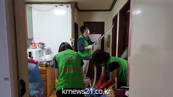 방문해 집안에 방치된 쓰레기 폐기물 700kg를 걷어내고, 가재도구 세척, 집안 정리 등