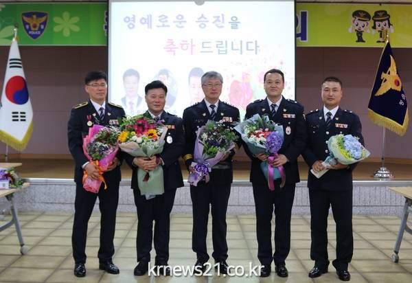한도연 서장은 “영예로운 승진 임용을 축하하며, 앞으로도 자신이 맡은 업무에 최선을 다해 민생치안에 힘 써달라.”고 당부했다.
