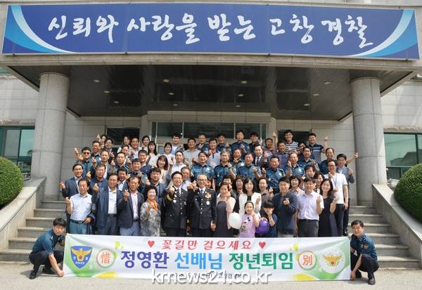 이 날 정년퇴임을 맞이한 정영환 경감은 “동료들이 있어 행복했고 몸은 떠나지만 마음은 항상 고창경찰 직원들과 함께 하겠다.”고 전했다.