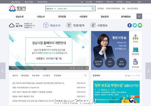 성남시는 반응형 웹으로 시 홈페이지(http://www.seongnam.go.kr)를 전면 개편해 7월 1일부터 서비스에 들어갔다.