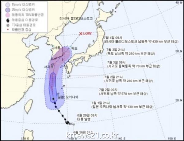 제7호 태풍 쁘리삐룬 북상으로, 울산 전역에 3일 낮 12시를 기해 태풍주의보가 발효된다.