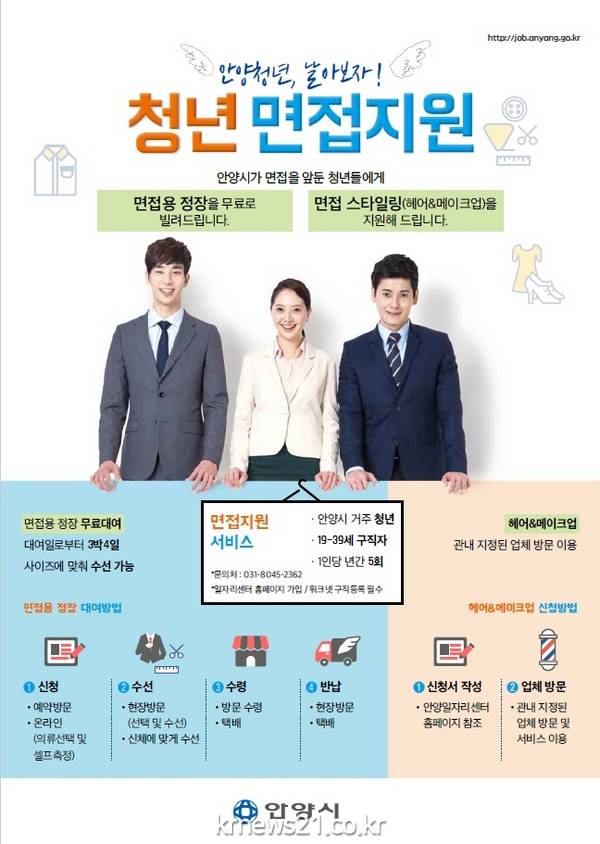 안양시(시장 최대호)는 면접 당일 청년들이 자신감 향상으로 취업에 긍정적인 효과를 낼 수 있도록 헤어와 메이크업을 지원한다고 밝혔다.