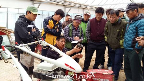 ▲ 농기계정비관리설명(전북/뉴스21)송태규기자= 완주군이 태풍과 여름철 집중호우를 대비해 농가의 농기계 보관관리 만전을 당부했다. 3일 완주군 농업기술센터에 따르면 여름 장마철 농기계는 오물 등을 깨끗이 씻어내고 기름칠을 한 뒤 비를 맞지 않는 실내에 보관해야 한다. 부득이하게 야외에 보관해야할 때는 비닐이나 방수포장으로 덮어 날아가지 않도록 잘 매어두어야 한다. 또한 날이 개면 빗물이나 습기에 녹이 나지 않도록 잘 말려야 한다.