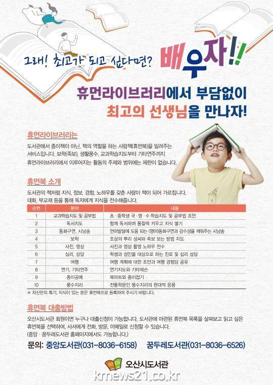 오산시도서관이 2018년 휴먼라이브러리(선생님도서관)를 운영하면서 휴먼 북(선생님) 과 학생을 연결해주는 소개사업을 본격적으로 시작하였다.
