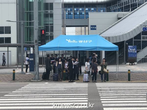 (뉴스21/장병기기자)=광산구(구청장 김삼호)가 여름철 폭염으로부터 주민 안전과 건강을 지키기 위해 무더위쉼터를 지정·운영하기로 하고, 주요 횡단보도에 그늘막을 설치하는 등 폭염안전망을 구축했다.
