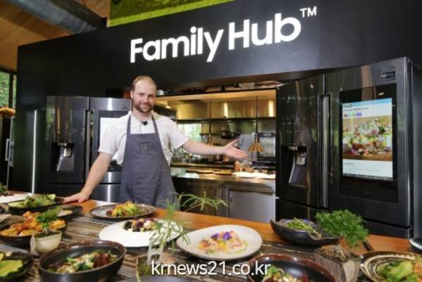 한편 이날 행사에는 유기농 요리로 유명한 캐나다 출신 올리버 트루스데일 주트라스(Oliver Truesdale-Jutras) 셰프가 스마트폰으로 냉장고 내부를 확인하는 ‘뷰 인사이드(View Inside)’ 등 소비자들이 일상에서 활용 가능한 ‘패밀리허브’의 다양한 기능을 활용해 라이브 쿠킹 쇼를 펼쳐 즐거움을 선사했다.