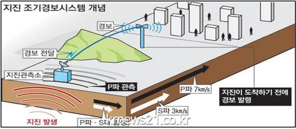 전파의 이동속도가 지진파 이동속도보다 4만 배(P파 기준)나 빠른 것을 이용한 것으로 200km 정도 떨어진 곳에서 지진이 발생할 경우 이 시스템을 활용하면 25초 정도의 대피시간을 확보할 수 있게 된다.