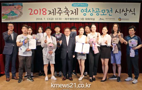 ▲ (사진=제주관광공사)제주특별자치도와 제주관광공사는 13일 오전 10시 30분 제주웰컴센터 3층 대회의실에서 제주축제영상공모전,청춘감독 콘테스트,시상식을 개최했다.