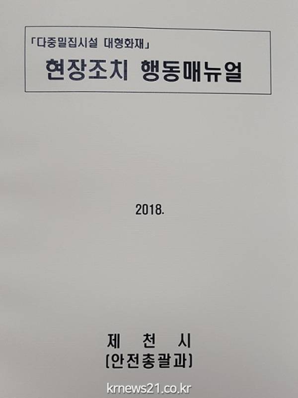 매뉴얼의 주요 내용은 △일반사항 △재난관리체계 △재난대응 절차 및 프로세스 △재난대응 단계별 행동요령 △제천시 협업체계 등으로 구성됐으며 특히 비상대응 및 화재 수습·복구에 많은 부분이 할애됐다.