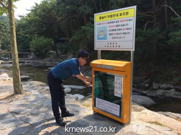 (전북/뉴스21)김문기기자=고창경찰서(서장 김성재) 모양지구대(대장 이상주)는 피서철을 앞두고 물놀이 위험지역 사전 점검으로 여름철 익사예방에 만전을 기하고 있다.