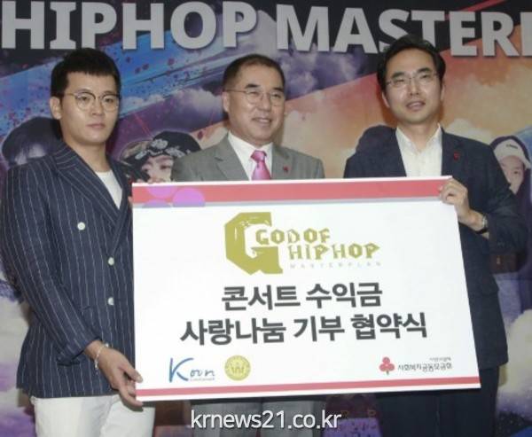 ‘GOD OF HIPHOP’은 대중문화와 기부가 하나가 된다는 취지로 공연 수익금을 사랑의 열매와 재단법인 위드국제재단에 기부해 전국의 불우청소년 장학금전달 및 소년·소녀 가장의 생활자금지원에 쓰는 문화기부 플랫폼으로 진행될 예정이다.