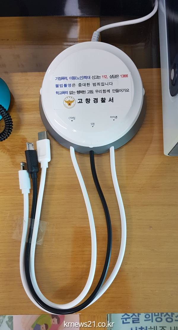 (전북/뉴스21)김문기기자=고창경찰서(서장 김성재)는 18일 민원 부서를 방문한 고객을 대상으로 민원인의 편의성을 높이기 위한 스마트폰 무료 충전기를 설치해 호평을 받고 있다.