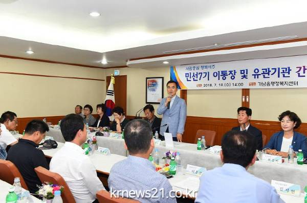 경기 여주시는 19일 민선7기 시장 취임에 즈음해 시민이 행복한 사람중심 행복여주로의 힘찬 도약을 위해 이·통장 및 유관기관 간담회를 실시하고 있다고 밝혔다.