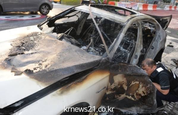 국토부는 20일 달리던 BMW 520d 차량의 화재 사고 원인을 조사한 결과 배기가스 순환장치에서 유출된 냉각수 침전물에 불이 붙은 것으로 잠정결론을 내렸다고 밝혔다.