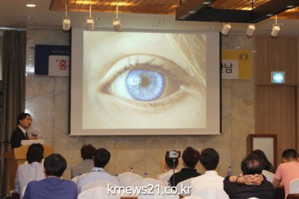 ▲ 다면분할 홍채인식 기술 설명 중인 주의별 대표아이리스코인뱅크(IRIS Coin Bank)는 7월 26일 한국에서의 2차 밋업을 개최한다.