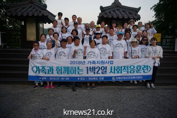 사회적응훈련에 참여한 회원과 가족들은 “평소에 가족과 여행갈 수 있는 기회가 없었는데 가족과 함께하는 1박2일 여행을 통해 소중한 추억을 만들 수 있었던 의미있는 시간이었다.”며 소외계층인 정신장애인과 가족에게 좋은 기회를 제공해 준 양평군에 감사의 뜻도 전하였다.