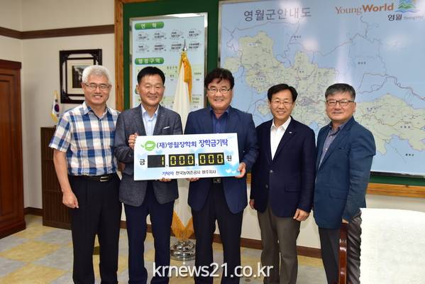 ▲ (사진=영월군청)(사)영월빅밴드(대표 김창갑)에서 영월지역 인재육성을 위해 장학금으로 쓰이길 바란다며 100만원을 재단법인 영월장학회(이사장 최명서)에 기탁하였다.