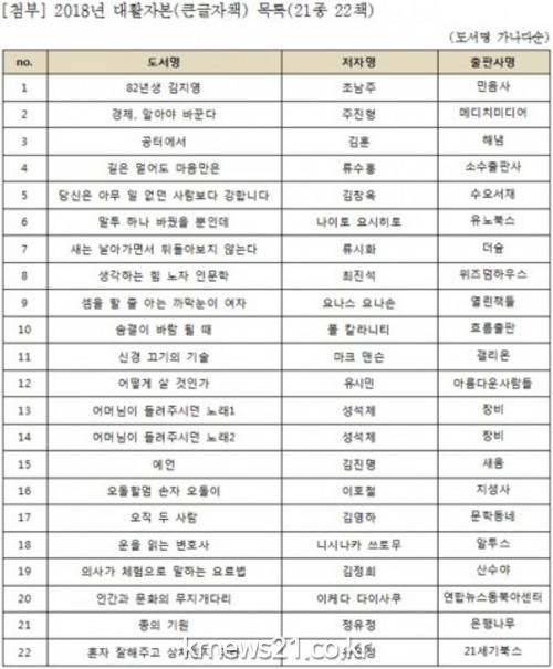 큰글자책은 시력을 문제로 독서에 대한 관심과 활동이 떨어지는 50대 이상의 연령층을 대상으로 하며 일반도서에 비해 1.5배 글자크기를 키운 15pt로 제작되었다. 도서관 빅데이터 시스템을 통해 50대 이상 이용자 인기대출 도서와 대형서점 2017년 판매통계자료를 참고하여 도서관과 출판계 전문가들의 심사를 거쳤으며 ‘공터에서(김훈, 해냄)’를 비롯하여 ‘82년생 김지영(조남주, 민음사)’, ‘생각하는 힘 노자 인문학(최진석, 위즈덤하우스)’과 같은 문학, 철학, 건강 등 다양한 주제의 21종 22책의 도서가 선정되었다.
