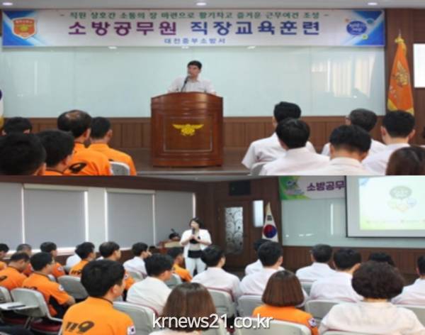 ▲ (사진=대전소방본부)대전중부소방서는 직원 상호 간 소통의 장을 마련하고 활기차고 즐거운 근무 여건을 조성하기 위해 직장교육을 실시했다고 밝혔다.