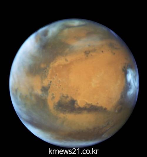 ▲ (사진=나사)화성의 남북극을 덮고 있는 얼음층인 극관의 1.5㎞ 아래에 액체 상태의 물이 모여 있는 지름 20㎞ 크기의 호수가 있다는 연구 결과가 나왔다.
