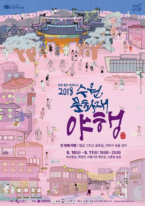 수원야행은 문화재청이 주관하는 ‘문화재 야행’의 하나로 밤에 수원화성, 화성행궁 등 문화재 곳곳을 여행하며 역사문화를 체험하는 프로그램이다. 프로그램 시간표를 비롯한 자세한 내용은 수원문화재단 홈페이지를 참고하면 된다.