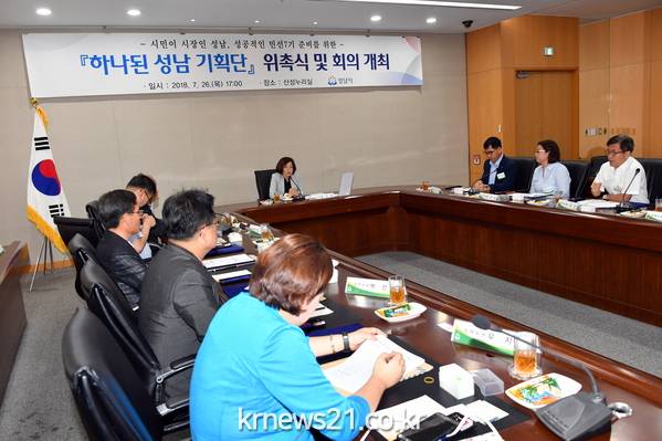 성남시는 민선7기 핵심 사업들을 ‘시민의 참여’를 통해 정책에 반영하기 위해 시민 전문가가 참여하는 ‘하나 된 성남 기획단’을 구성했다.