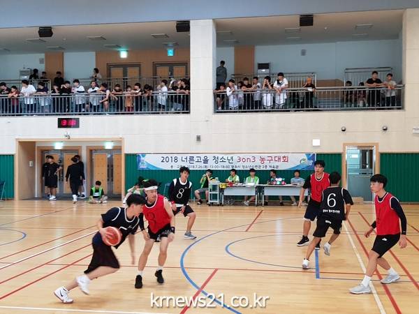 청소년들의 건강한 여름방학을 위해 마련된 ‘너른 고을 청소년 3대3 농구대회’에는 중‧고등학생 100여명이 참가해 중등부(8팀)와 고등부(8팀)로 나눠 시합을 진행했다.