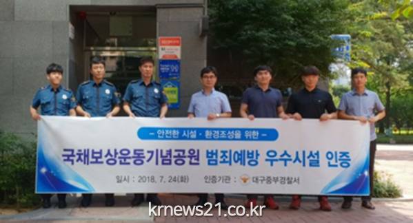 ▲ (사진=대구시청)범죄예방 우수시설 인증은 시민들 다수가 이용하는 시설물에 대해 범죄예방환경을 진단하여 우수시설로 인증하는 제도로 안전 강화와 범죄예방에 대한 지역공동체의 치안참여 및 자발적인 시설개선유도를 목적으로 시행하고 있다.