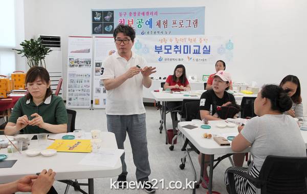 한편 7월 18일부터 9월 12일까지 총 8회에 걸쳐 드림스타트 부모들을 대상으로 에덴공방(충장로 37)에서 ‘부모취미교실’을 운영 중이다. 신경식 금속공예명장과 함께하는 이번 행사는 전통칠보공예를 통해 액세서리 등 공예품을 만들어보는 체험이다.