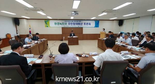 ▲ (사진=창원시청)창원시는 의회대회의실에서 시의원, 학계, 전문가 등 33명이 참여한 가운데 ‘2019년 예산 편성을 위한 환경녹지국 주민참여예산 토론회’를 개최했다.