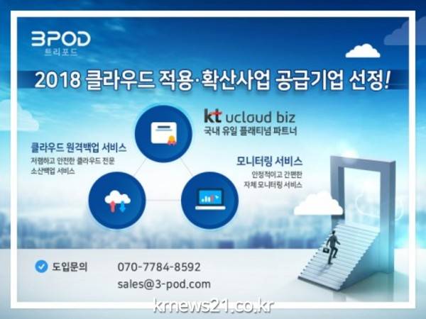 KT ucloud biz 플래티넘 파트너 트리포드(대표 장민호)는 2017년에 이어 정보통신산업진흥원(NIPA)이 진행하는 ‘2018년 클라우드 적용·확산 사업의 공급기업으로 연속 선정됐다고 1일 밝혔다.